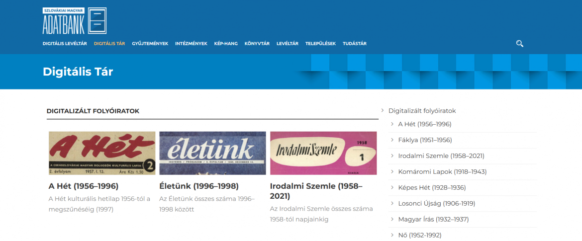 A digitalizált folyóiratok az alábbi címen érhetők el: https://adatbank.sk/digitalis-tar/.