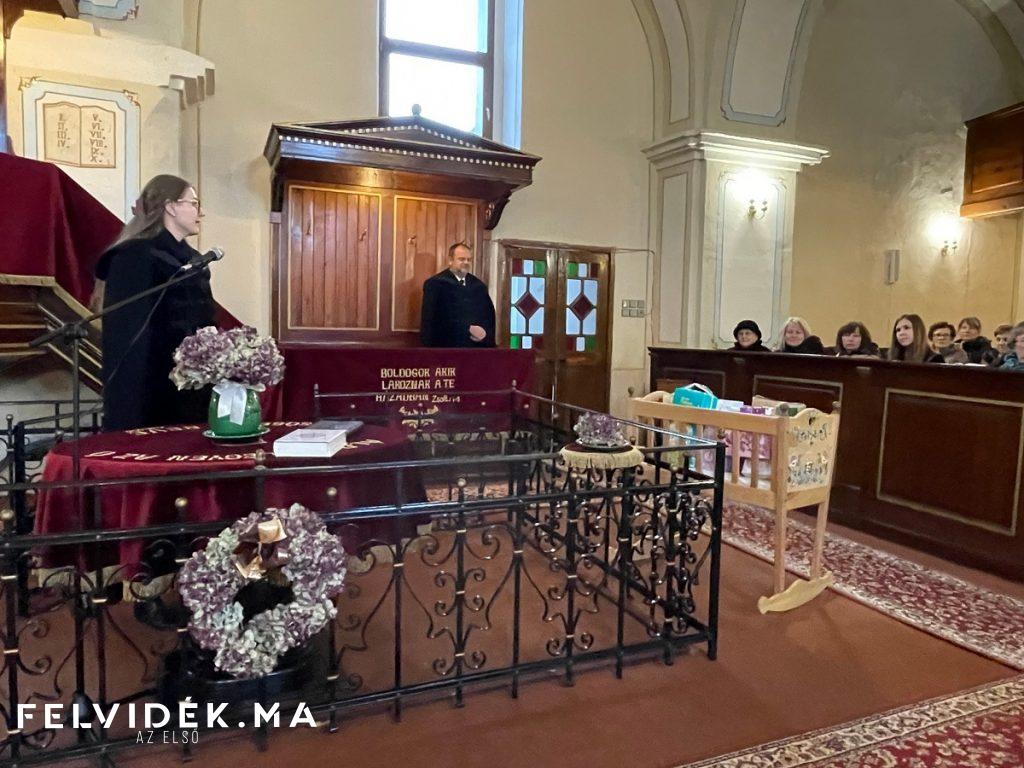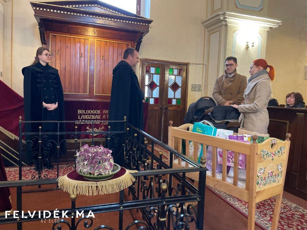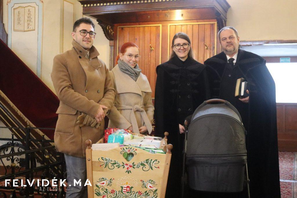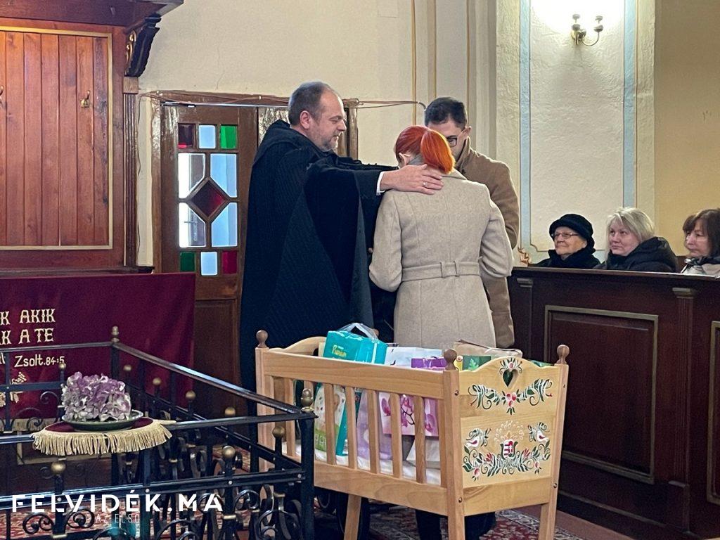 A szádalmási Halász család, az ifjú szülők a tornagörgői református templomban a vasárnapi istentisztelet keretében örömmel vették birtokba kislányuk számára az ajándékokkal teli vándorbölcsőt.