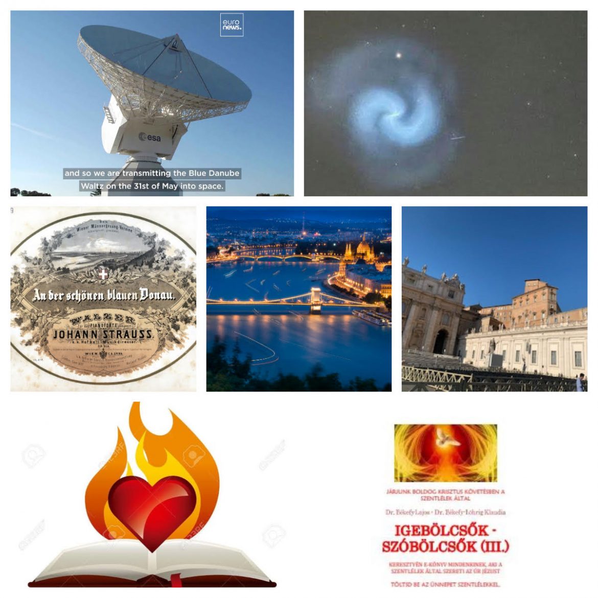 Miközben pünkösdre, azaz, Isten földi és kozmikus egyetemességének ünnepére gondolok halk sétával a vatikáni főutcán, a Via della Conciliazionen, hogy még magamat se zavarjam meg lépteim zajával az ősi kockakövek koppintásával, hirtelen a pneumatikus, Lélek teremtette egyidejűségben elém ugrik a hír: az elmúlt szombat este, május 31-én a Bécsi Szimfonikus Zenekar rendhagyó koncerten eljátszotta Johann Strauss Kék Duna keringőjét, amit az Európai Űrügynökség (ESA) ezzel egy időben az űrbe sugárzott. A keringő rádiójelek formájában jutott a világmindenség végtelen koncerthalljába.