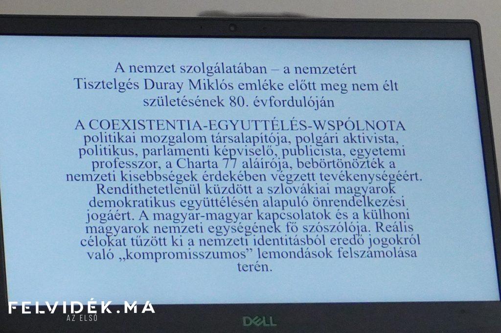 A rendezvény keretében virágokat helyeztek el Duray Miklós sírjánál a losonci volt református temetőben, majd a Szabó Gyula Emlékházban Duray Miklóssal kapcsolatos könyvbemutatóra került sor Gyurcsík Iván előadásában. A szerkesztő a „Hogyan lett a kutyaszorítóból nyakörv?” és „A nemzet szolgálatában” című köteteket mutatta be. A közös ebédet követően délután az Együttélés Politikai Mozgalom 35 évvel ezelőtti megalakulására tekintettek vissza az erre meghívottak körében. Hozzászóltak Hahné Duray Éva, Bauer Edit, Flórián László, Stanislaw Gawlik, Kvarda József gondolatait Reiter Krisztina olvasta fel, továbbá Balassa Zoltán, Gyurcsík Iván, Szabó Kinga.
