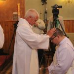 A főpásztor ezután a kézfeltétel által átadta a „papi hatalmat” Ollé Tamásnak, majd a Nagyszombati Egyházmegye jelenlévő lelkipásztorai – a felszentelt fejére téve kezüket – befogadták őt a papi közösségbe.