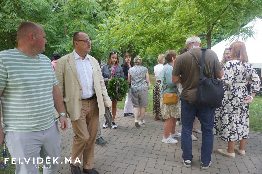 Végezetül köszönetet mondott mindazoknak, akik őrzik férje emlékét, a család nevében is háláját fejezve ki a jelenlévőknek. Majd elhelyezték a megemlékezés virágait.
