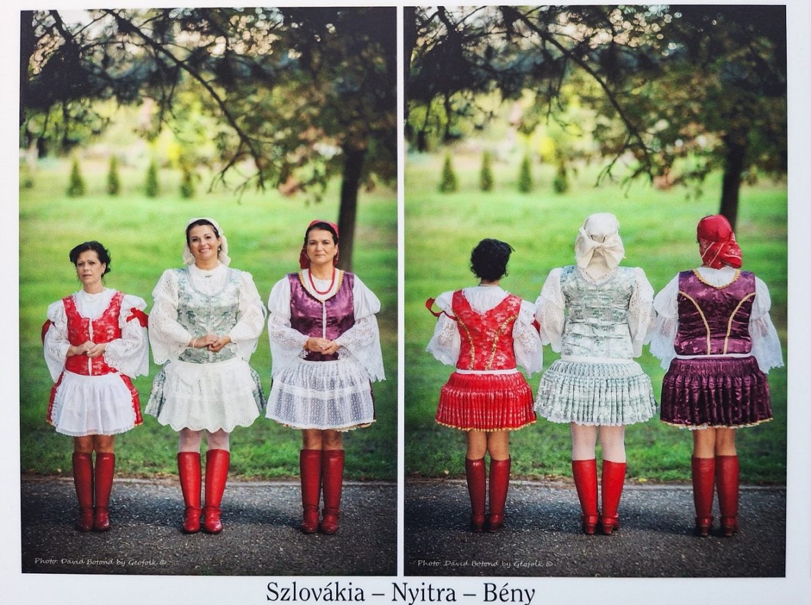 A tárlaton zoboraljai, gömöri, magyarbődi viselet mellett a bényi kurtaszoknyás menyecskék láthatóak. A szlovák népviseletet a Besztercebánya környéki népviselet képviseli.
