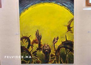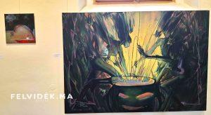 Már a kiállítás címe is a misztikumra utal. Az Aki fél, az ne menjen az erdőbe elnevezésű tárlat főleg nagyobb méretű festményeket ölel fel. A különleges technikával készült alkotásokat a tematika mentén komor, sötétebb színek jellemzik. Üde foltként jelennek meg a sárga, piros színek. Mindennek jelentése is van.