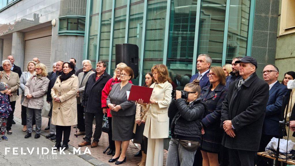 Szénássy Tímea városi képviselő a családot képviselve, Szénássy Zoltán életútját ismertette. A régi patríciusi család leszármazottjaként született Szénássy Zoltán a pápai tanítóképzőben érettségizett, mivel a komáromi kollégiumot (tanítóképzőt) 1945-ben bezárták. Nem volt hajlandó reszlovakizálni, ezért a háború után nem taníthatott, így évekig segédmunkásként dolgozott különböző építkezéseken és a komáromi hajógyárban. Csak 1949-ben, a magyar pedagógiai intézmények megnyitása után tölthette be tanítói hivatását, amelyet egész életében szolgálatként értelmezett. A pedagógiai szolgálat mellett elvégezte a pozsonyi Comenius Egyetem magyar-történelem szakát, később ugyanitt doktorált. A komáromi gimnázium diákjait 1960 és 1991 között oktatta és nevelte.
