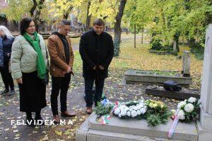 A megemlékezés zárásaként a jelenlévők elhelyezték az emlékezés virágait és koszorúikat a síremléknél.