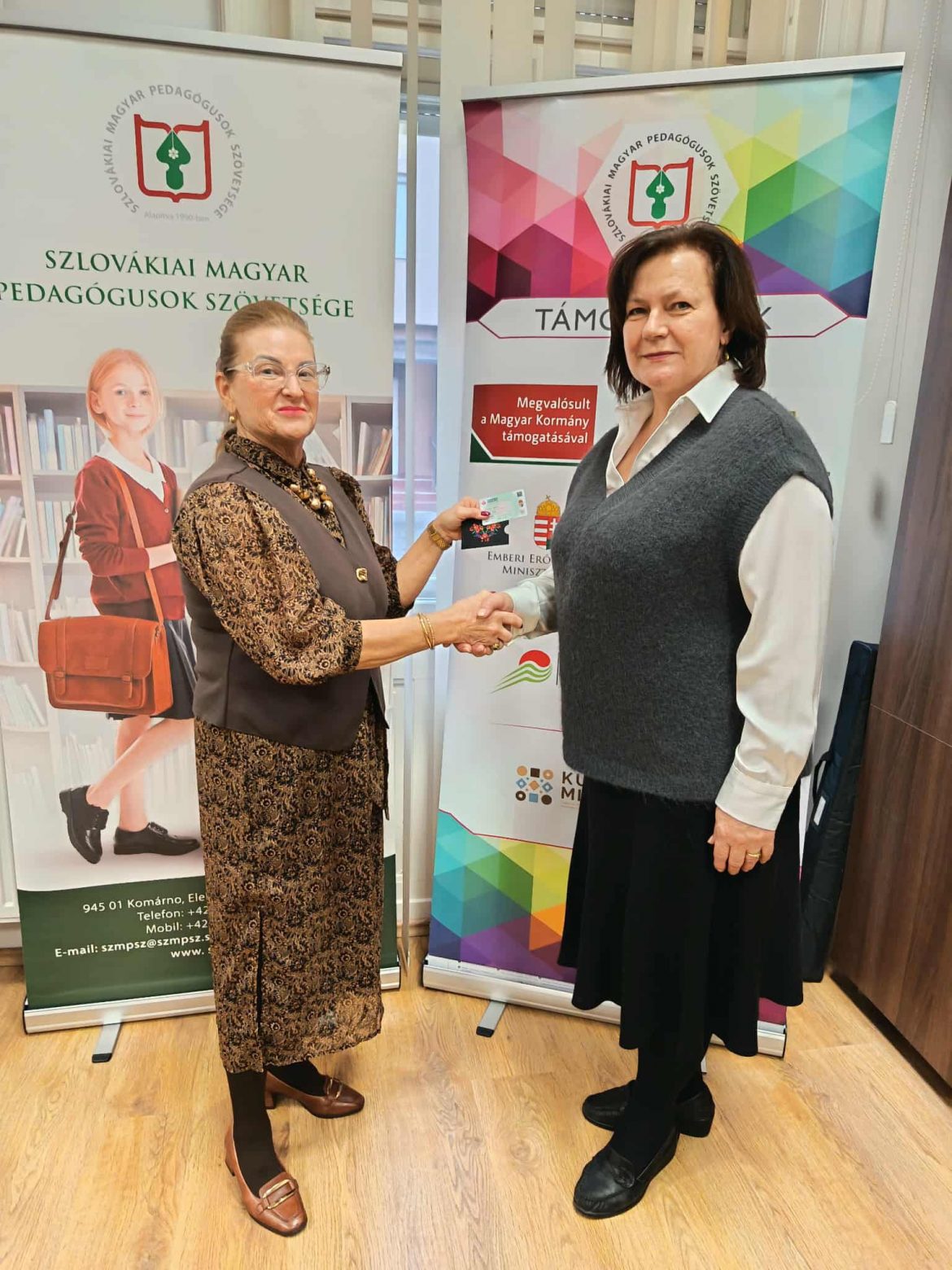 A pedagógusok, oktatók és a nevelő-oktató munkát közvetlenül segítő munkakörben foglalkoztatottak a kedvezmények igénybevételére jogosító igazolványt igényelhetnek. Fekete Irén, az SZMPSZ elnöke átadta a Felvidéken az első ilyen pedagógus igazolványt.