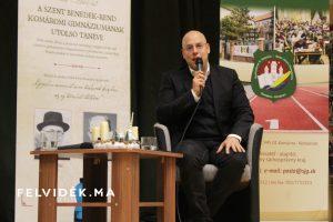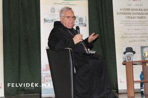 Várszegi Asztrik részletes történelmi áttekintést adott a hallgatóságnak a bencés rend helyzetéről, különösen az 1945 előtti és utáni időszakról. Felidézte: 1945-ben lezárult a feudális korszak, Pannonhalmán pedig a változások idején mások mellett nem volt civil alkalmazott, mindent a közösségnek kellett megoldania. Beszélt az iskolák bezárásáról, az adományokra szoruló túlélésről, valamint arról is, hogy akkoriban több szerzetes atya kénytelen volt emigrálni az országból (Komáromból Hites Kristóf atya nevét is említette).