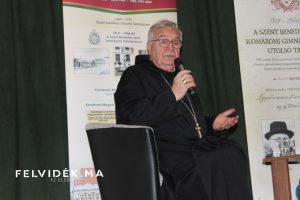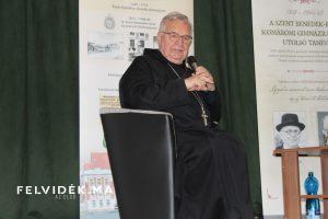 Várszegi Asztrik részletes történelmi áttekintést adott a hallgatóságnak a bencés rend helyzetéről, különösen az 1945 előtti és utáni időszakról. Felidézte: 1945-ben lezárult a feudális korszak, Pannonhalmán pedig a változások idején mások mellett nem volt civil alkalmazott, mindent a közösségnek kellett megoldania. Beszélt az iskolák bezárásáról, az adományokra szoruló túlélésről, valamint arról is, hogy akkoriban több szerzetes atya kénytelen volt emigrálni az országból (Komáromból Hites Kristóf atya nevét is említette).