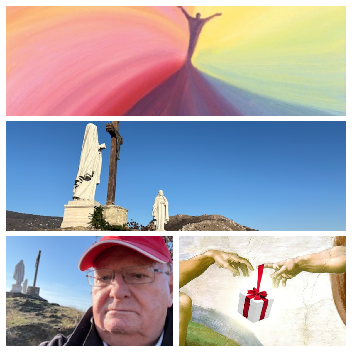 Mindig a legjobb földi társaságban van. Aki hisz a Feltámadott Jézus Krisztusban, a jászolbölcső Gyermekében már ott növekvő Isten Bárányában, a Királyok Királyában, nem szenved tér-idői magányban. A mélykék, nápolyi kéket is fölülmúló budaörsi Isten-kékségben, az Isten-közelséget éreztető budaörsi karácsonyi azúrban a Szentháromság mellett velem volt egy drága, további hármas. Ezt mindenki láthatja itt a Kálvárián: a fakereszt, Mária és János kőalakja.