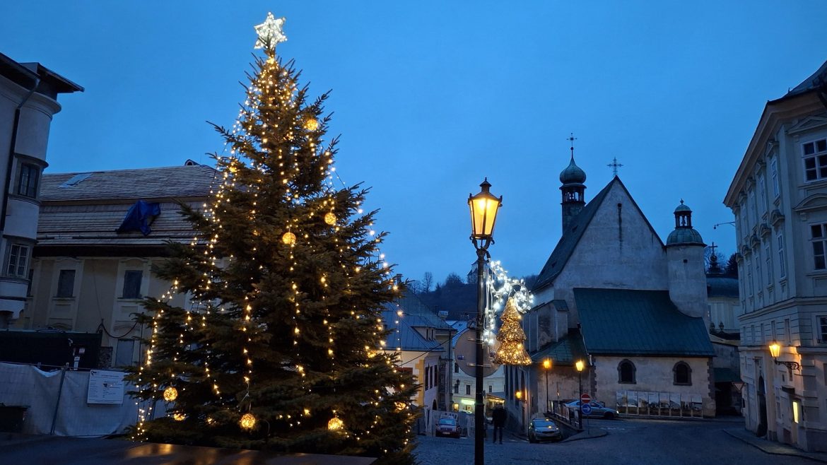 A fotográfiák által nézzünk körbe Selmecbánya központjában. A szerző felvételei december második felében készültek.