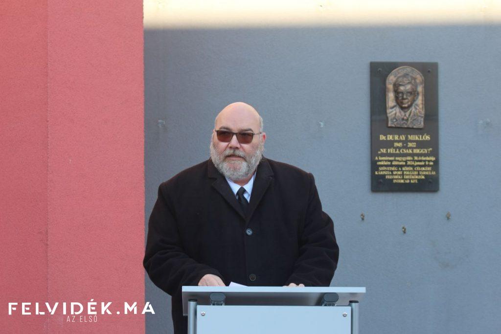 Beszéde középpontjába a hit és a félelem leküzdésének kérdését állította. A Duray-emléktáblán olvasható mondat – „Ne félj, csak higgy!” – szerinte „örök életű felszólítás, egy etalon”. Hangsúlyozta, miszerint „alázatosan jelentjük mindenkinek, megfogadtuk, eszerint cselekszünk”, még akkor is, ha a kollektív bűnösség rendszerének elutasítása ma ismét politikai és jogi kockázatot hordoz.