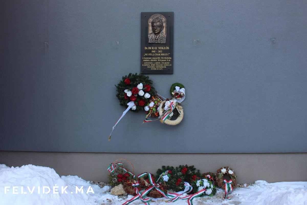 Duray Miklós emléktáblájánál tartottak koszorúzással egybekötött megemlékezést csütörtökön Komáromban, az INTERCAD épületénél. A Kárpátia Sport Polgári Társulás, a Felvidéki Értékőrzők és a Szövetség a Közös Célokért rendezvénye immáron harmadik alkalommal került megrendezésre. Az esemény egyszerre volt tisztelgés a felvidéki magyar közélet meghatározó alakja előtt és határozott reflexió a jelen politikai és jogi folyamataira. A felszólalók egyértelművé tették: a Duray Miklós által képviselt közösségi jogvédelem kérdései ma is élesen jelen vannak.