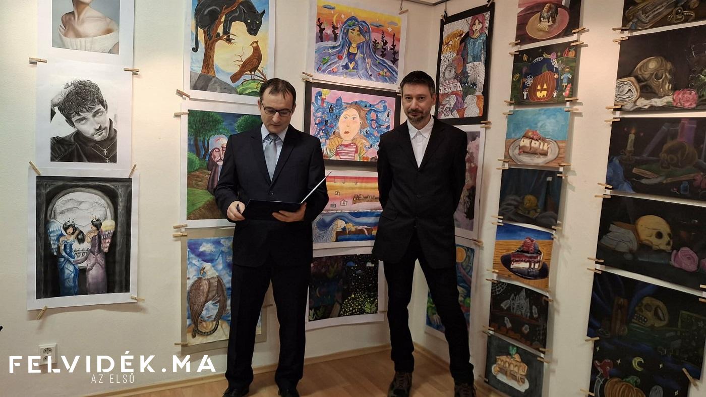 Az Ipolysági Művészeti Alapiskola képzőművészeti szakának két pedagógusa, Róm Friderika és Németh Géza rövid köszöntő szöveggel mutatta be a tárlatot.