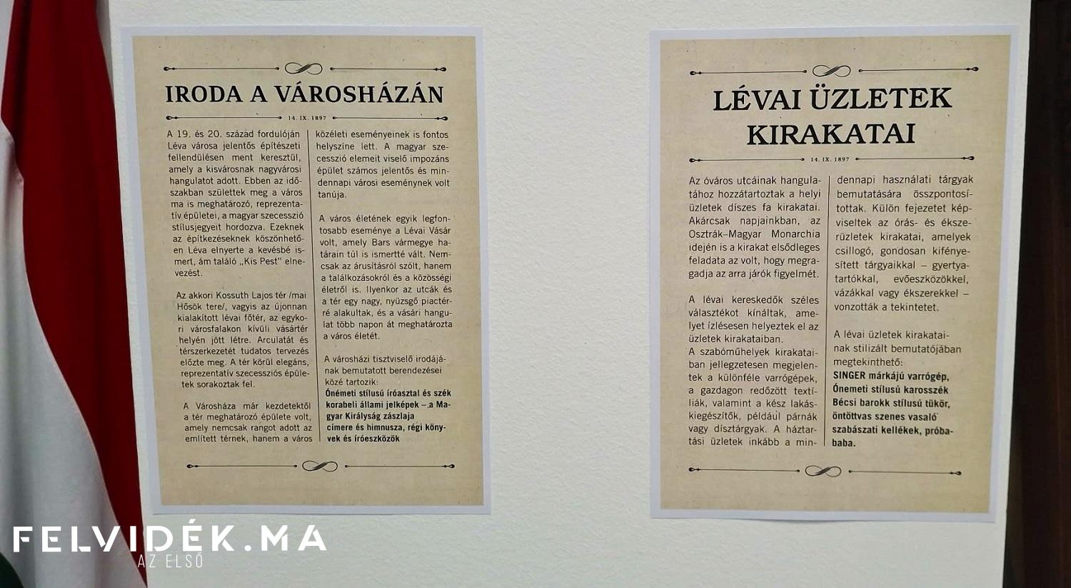 A kétnyelvű (magyar és szlovák) kiállítás a polgári Léva miliőjét hozza el a látogatóknak. A művelődési központ kiállítóterében öt egységben vázolják fel a monarchiabeli életet. Az egyik sarokban a közigazgatás elevenedik meg az akkor még kétszintes városházával, a magyar királyi címerrel és a himnusszal. Az egykori Kossuth tér (mai Hősök tere) nem csupán a város központja volt, a kereskedők és céhek üzletei is itt összpontosultak. Ezt mutatja be a tárlat következő része számos régi plakáttal, használati eszközzel egyetemben.