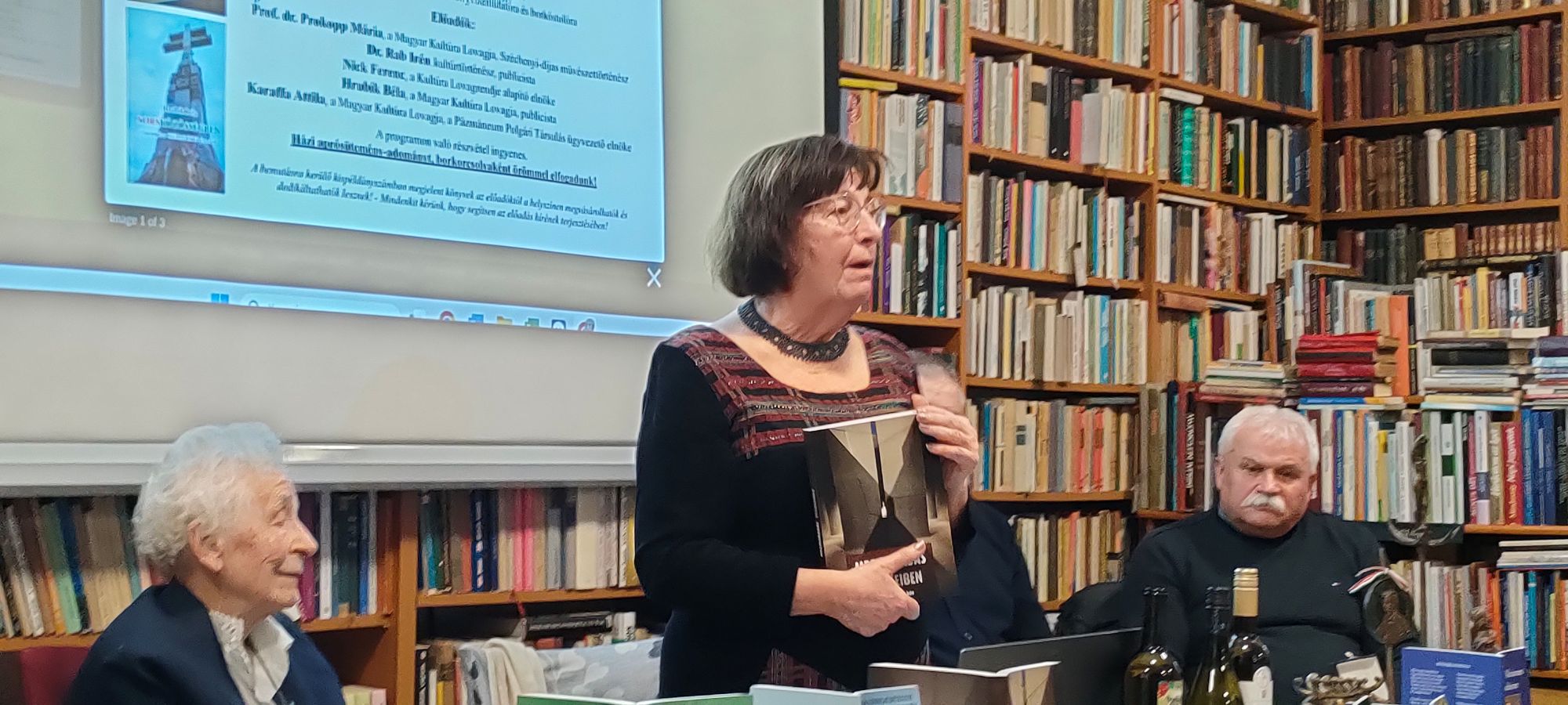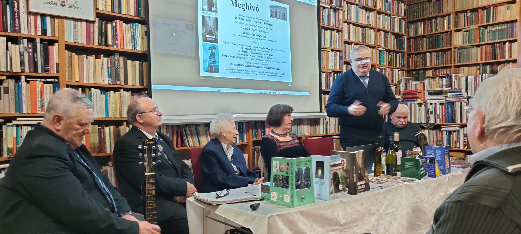 A magyar kultúra napja alkalmából Esztergomban a Laskai Osvát Antikváriumban egy figyelmet keltő találkozóra került sor. Mint arról nemrég ezen oldalon olvashattunk, Mezeiné Tomorszky Mária, az antikvárium egyik tulajdonosa felvidéki társaival együtt Budapesten átvehette a Magyar Kultúra Lovagja címet. Ebből jött a gondolata, hogy meghívja ez ünnep alkalmából két lovagtársát és hazai vendéget is egy beszélgetésre, előadásra, s persze koccintásra a kitüntetés alkalmából.