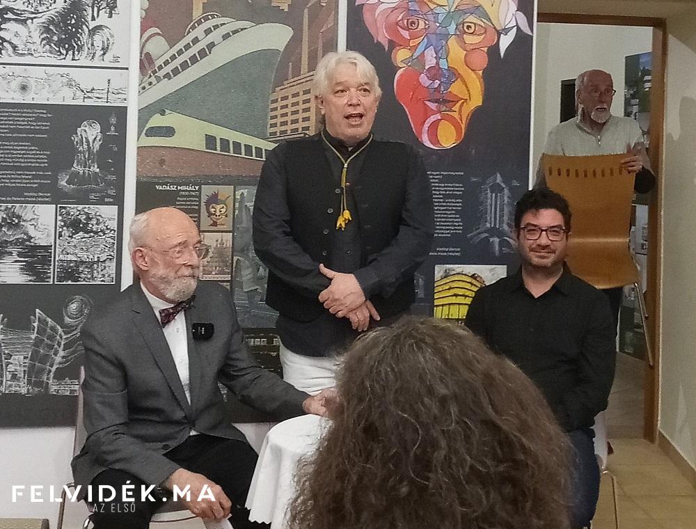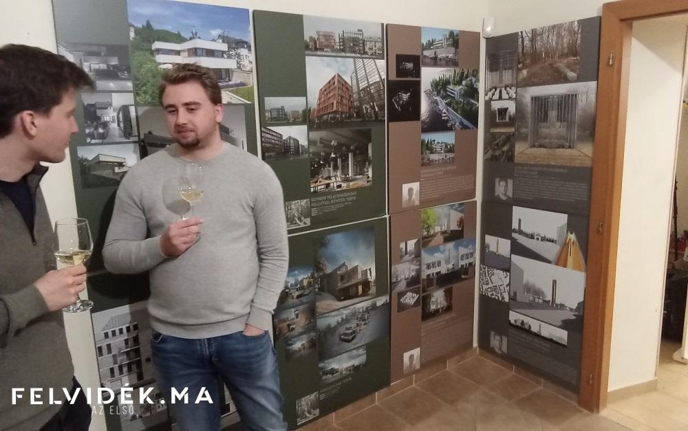 A tárlatvezetést Vadász Bence végezte a megnyitó után. Levetítette a társaság által tervezett épületeket, de a nagyapa munkáinak bemutatásával kezdte.