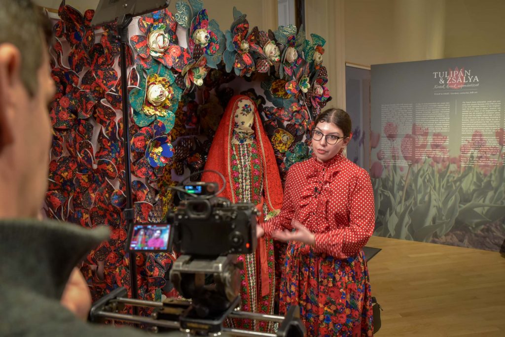 „A kiállítás a virágok, növények szimbolikáját vizsgálja, egy teljesen szokatlan kultúrtörténeti kontextusban a magyar népművészeten belül – kezdi A Tulipán & zsálya – Kertek, korok, népművészet című kiállítás tárlatvezetését Üveges Krisztina művészettörténész, a Hagyományok Háza Magyar Népi Iparművészeti Múzeum muzeológusa. – A kiállítás a keresztény kultúrkör szimbolikus növényeivel indul. Megismerhetjük a Szűz Máriához, a tisztasághoz kapcsolódó növényeket, mint a liliom, a margaréta, és más keresztény szimbólumokat, mint a szőlő. A középkorban az apátsági kertekben termesztették azokat, majd a paraszti kertek kedvelt növényei lettek.”