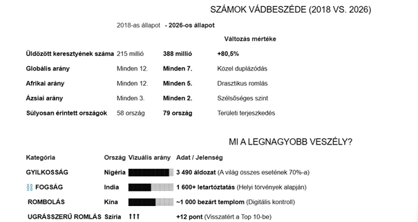 Nemrég a Felvidék.ma online portálon közzétettem az OpenDoors 2026 jelentés alapján írt beszámolómat a világméretekben egyáltalán nem csökkenő keresztyénüldözés 2025. évi helyzetéről. Jeleztem azt is, hogy a töretlen vallási gyűlöletről és a keresztyénüldözés újabb eszköztáráról és jelenségeiről további összefoglaló elemző könyvet írok. 2015-ben már megjelent ilyen könyvem, amely az üldözések történetét vizsgálja Jézus korától napjainkig.