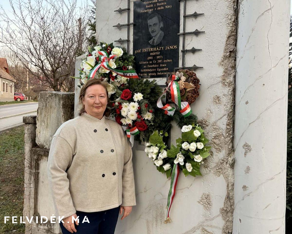 A pogrányi Esterházy-emléktáblánál Dávid Zsuzsanna Petőfi-ösztöndíjas köszöntötte az emlékező közösséget. Koszorút helyezett el Gubík László, a Magyar Szövetség elnöke és Molnár Imre történész, továbbá Csámpai Ottó, az Esterházy Zarándokközpont igazgatója és Földesi László, valamint Hideghéthy Andrea, a SZAKC ügyvezető igazgatója és Csekei Tamás, a barslédeci Csemadok alapszervezet tagja, Bús Mihály, Pográny alpolgármestere.