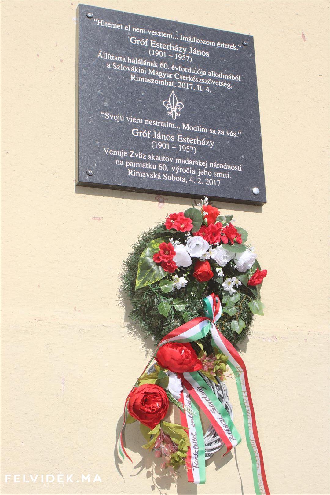 A 4. sz. Hatvani István Cserkészcsapat Daxner utcai otthonának falán elhelyezett emléktáblát is megkoszorúzták a cserkészek és a Rákóczi Szövetség képviselői Esterházy János születésének 125. évfordulója alkalmából március idusán.