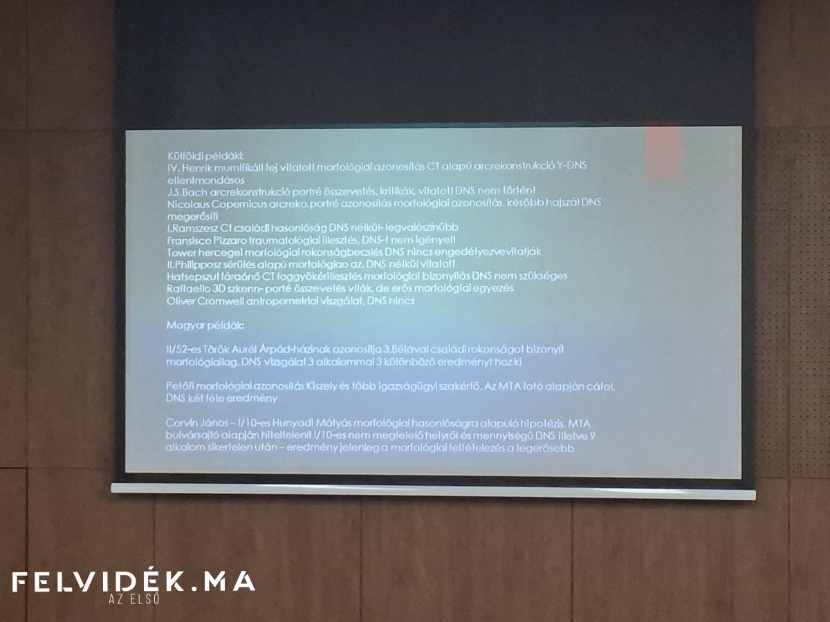 Az előadó hangsúlyozta, hogy jelenleg az arcrekonstrukció az egyetlen olyan tudományosan megalapozott módszer, amely lehetővé teszi, hogy a történelmi személyiségek arcát újra láthatóvá tegyük. Munkája során régészeti, antropológiai és igazságügyi módszereket ötvöz, kiegészítve genetikai vizsgálatokkal, amennyiben azok rendelkezésre állnak.