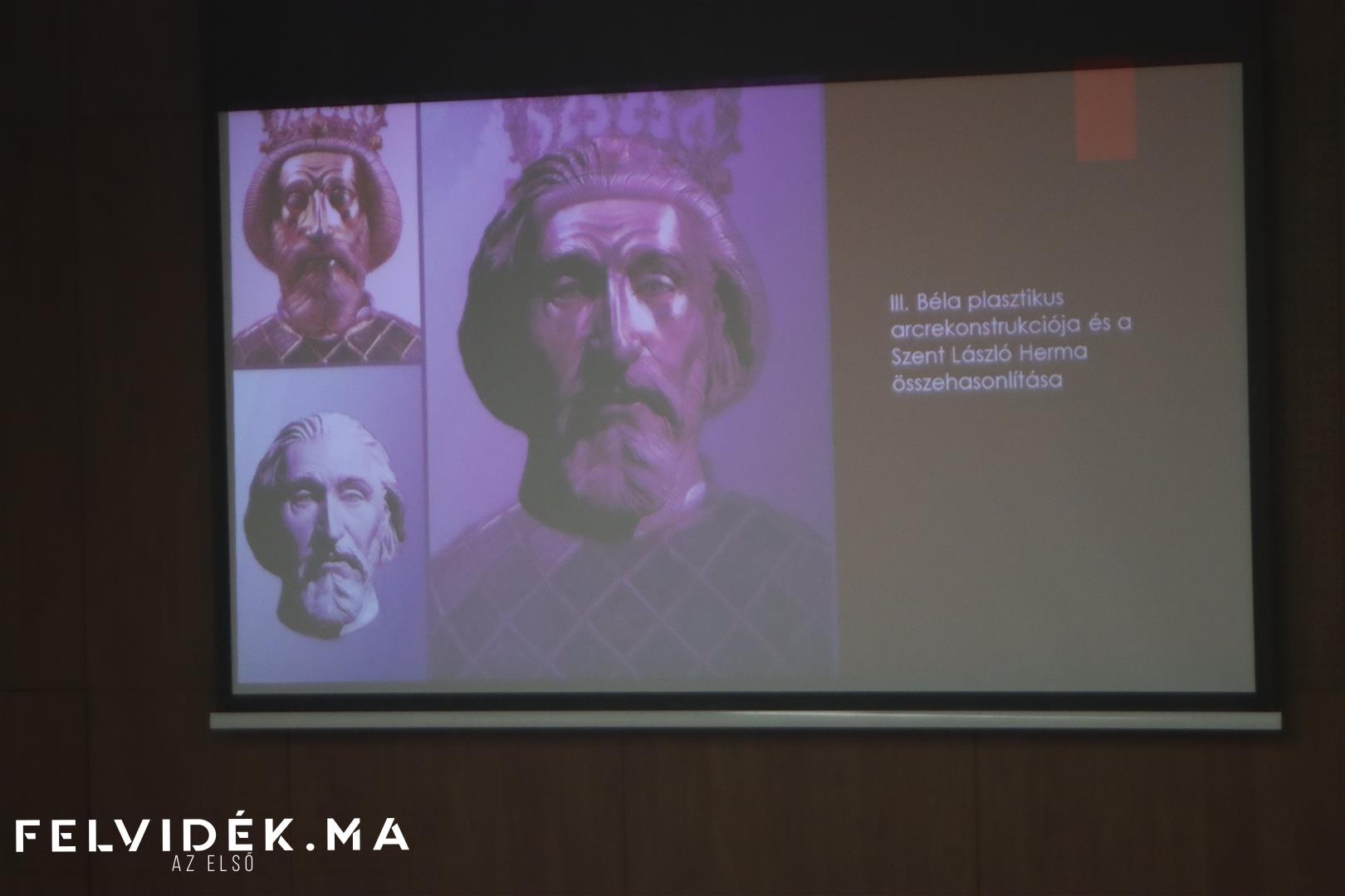 A közel másfél órás vetített képes előadása során mintegy hetven arcrekonstrukciót mutatott be, a különböző történelmi korszakokon át egészen a magyar királyok, szentek és fejedelmek világáig. Ezek közül több munka – elmondása szerint – most került először bemutatásra.
