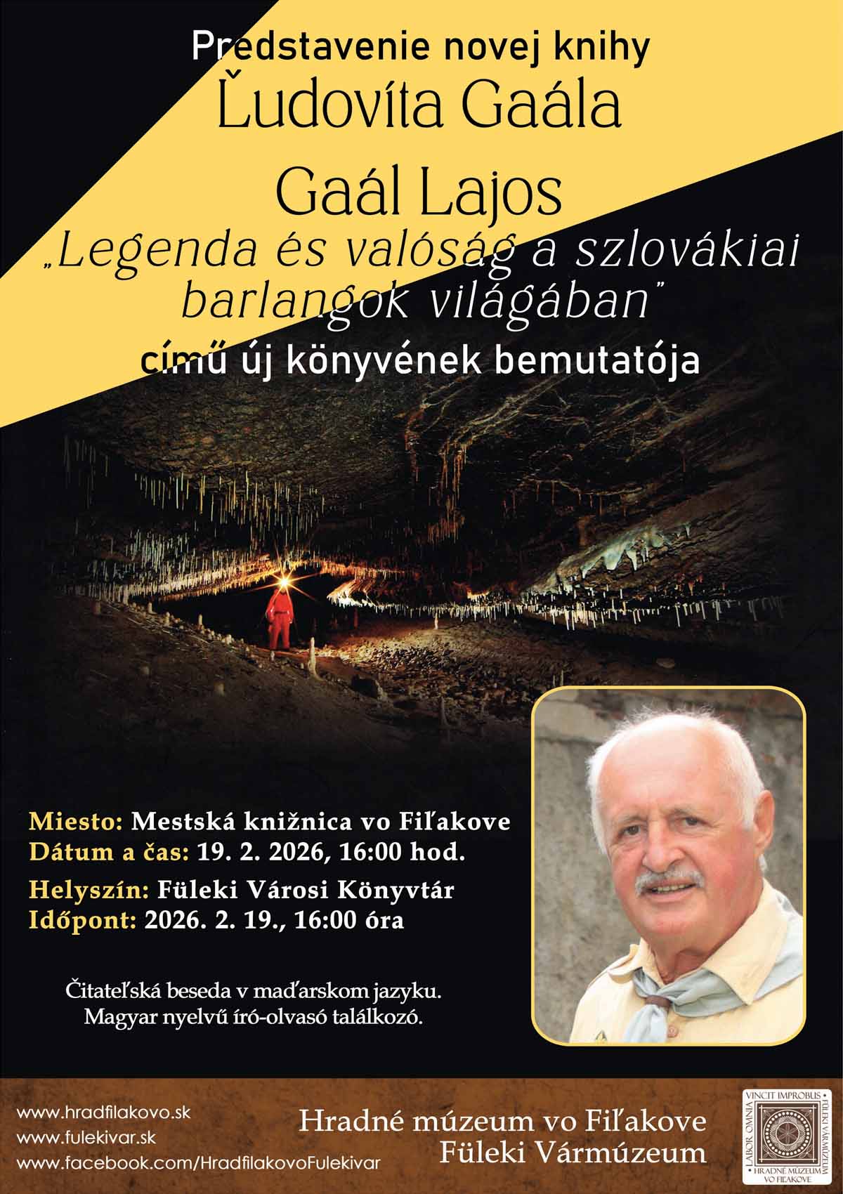 A Füleki Városi Könyvtár szeretettel meghív minden érdeklődőt Gaál Lajos könyvbemutatójára, ahol legújabb könyvét mutatja be: „Legenda és valóság a szlovákiai barlangok világában“.