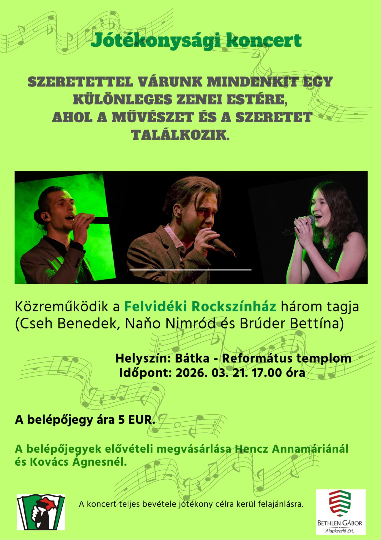 A Csemadok Bátkai Alapszervezete március 21-én jótékonysági koncertet szervez a református templomban 17.00 órai kezdettel.