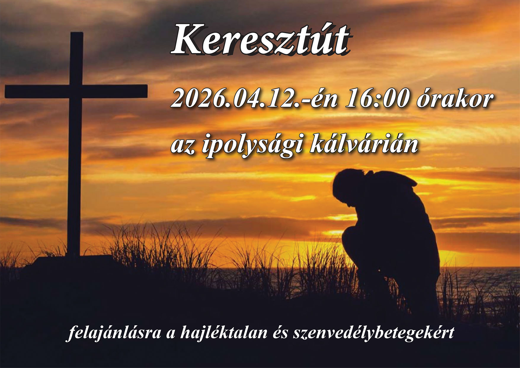 Április 12-én, vasárnap 16.00 órai kezdettel szervezik meg a keresztutat az ipolysági Honti Kálvárián, melyet a hajléktalanokért és szenvedélybetegekért ajánlanak fel.