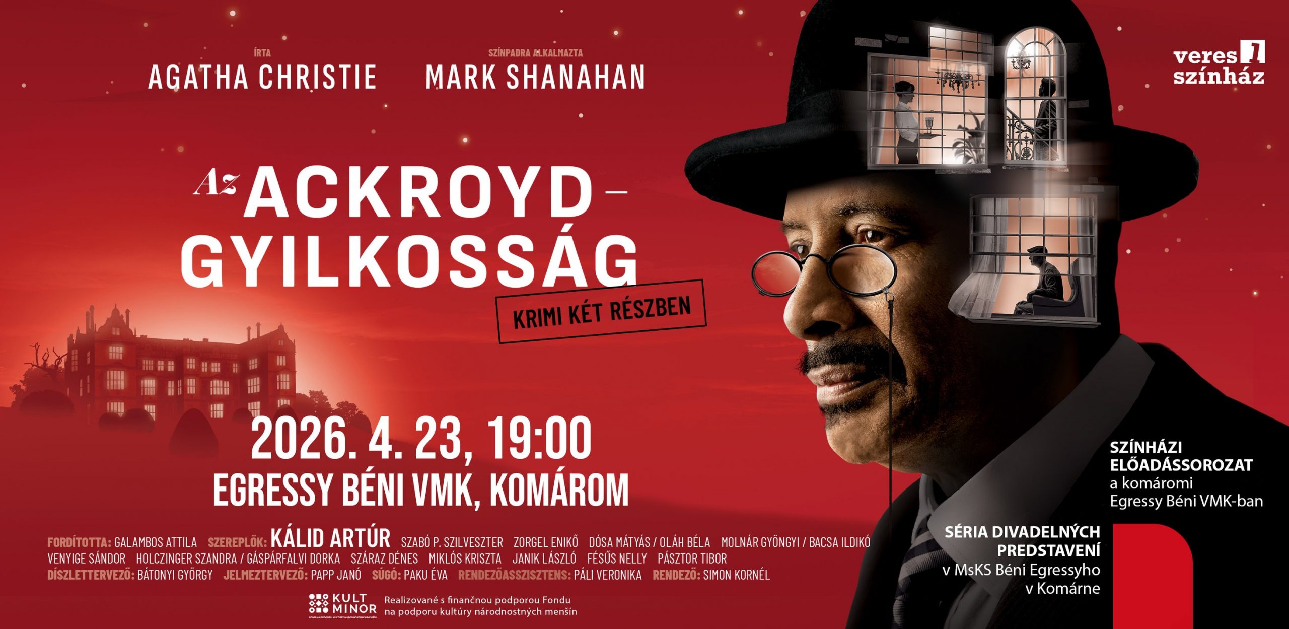 Április 23-án, csütörtökön 19.00 órai kezdettel szervezik meg Az Ackroyd-gyilkosság című krimi bemutatóját a komáromi Egressy Béni Városi Művelődési Központban.