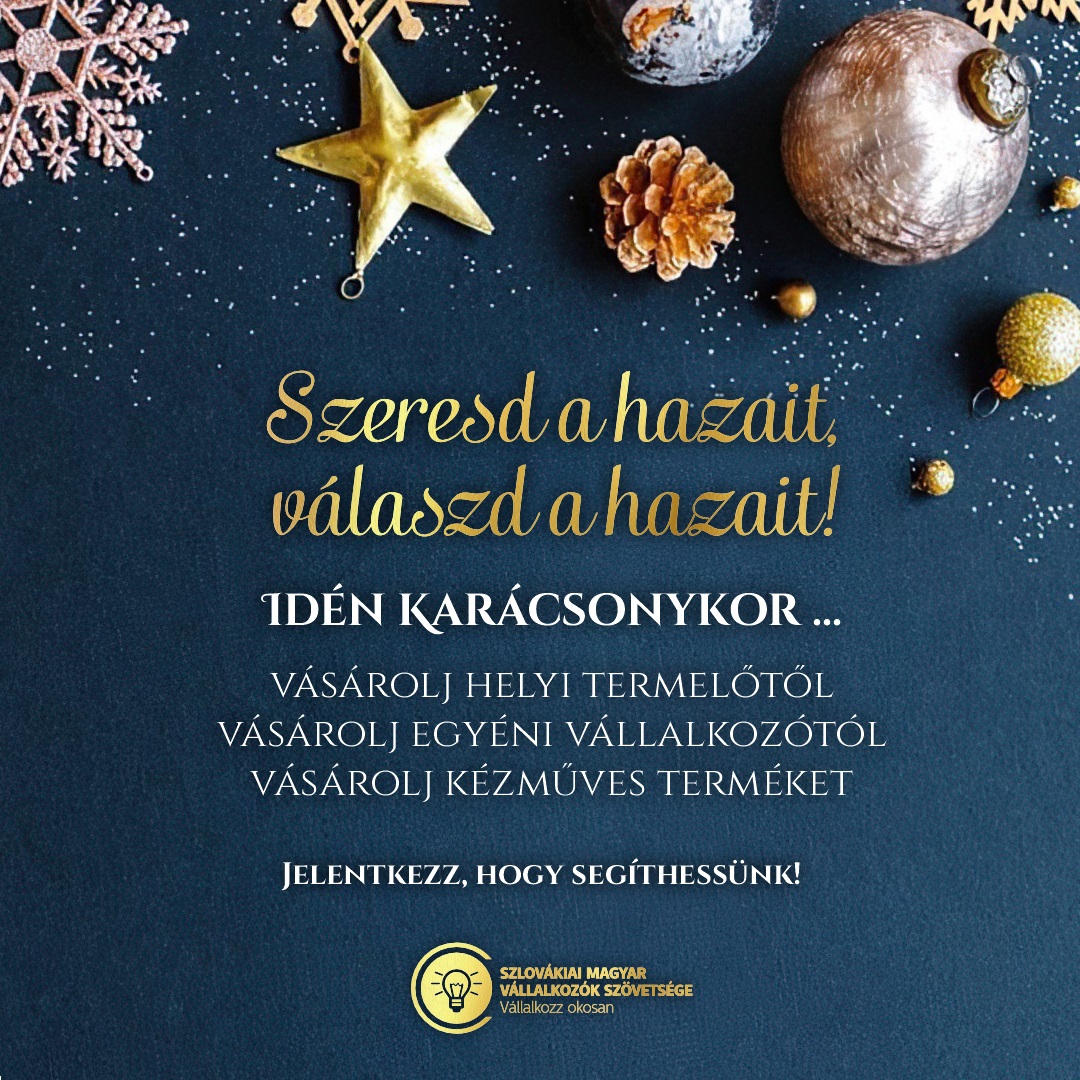 tt a karácsony, ezért szeretnénk lehetőséget biztosítani hirdetéseitek megjelenítésére a Szlovákiai Magyar Vállalkozók Szövetsége közösségi platformjain és weboldalán! Mint tudjátok, közeledik a karácsony. Tisztában vagyunk vele, hogy ebben…