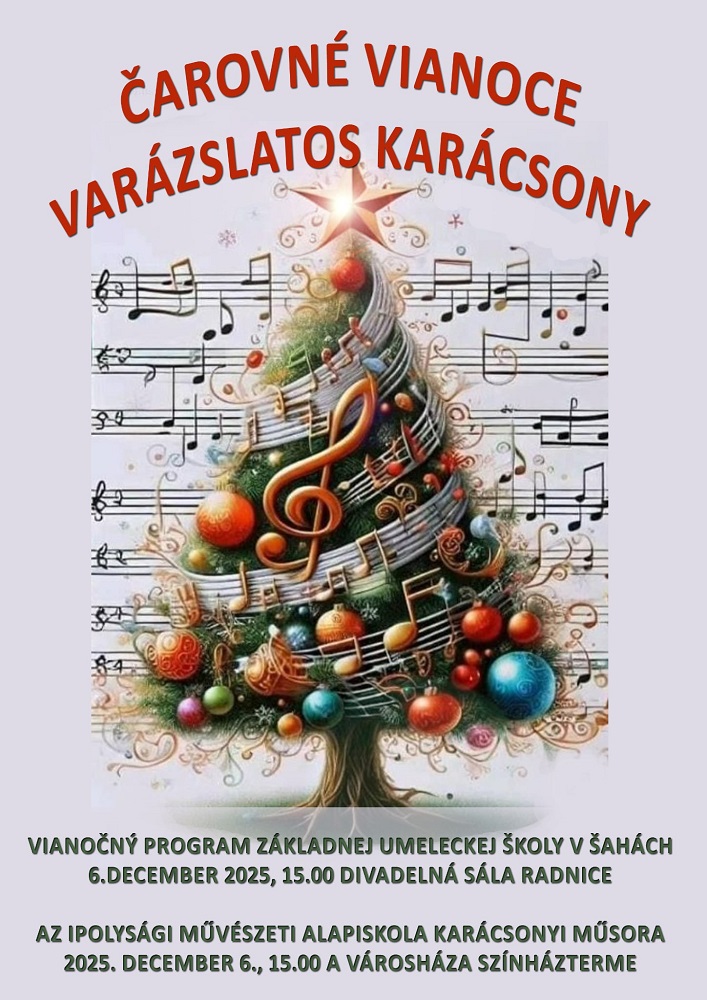 December 6-án, szombaton 15.00 órai kezdettel szervezik meg a Varázslatod karácsony címmel az Ipolysági Művészeti Alapiskola karácsonyi műsorát az ipolysági városháza színháztermében.